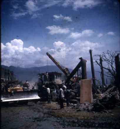 Remoción de escombros luego de la explosión de 7 de agosto de 1956 en la ciudad de Santiago de Cali