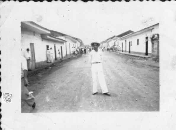 Julio Vásquez en la calle principal de Santa Elena. El Cerrito. 1958.