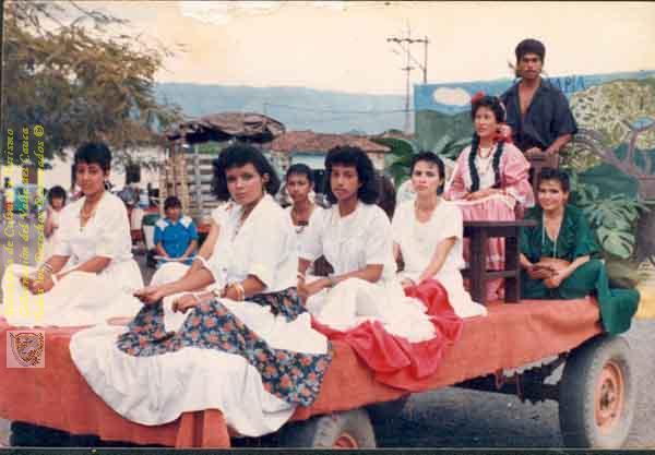 Comparsas en las fiestas municipales. Primer y único reinado de señoras. Andalucía,1988.