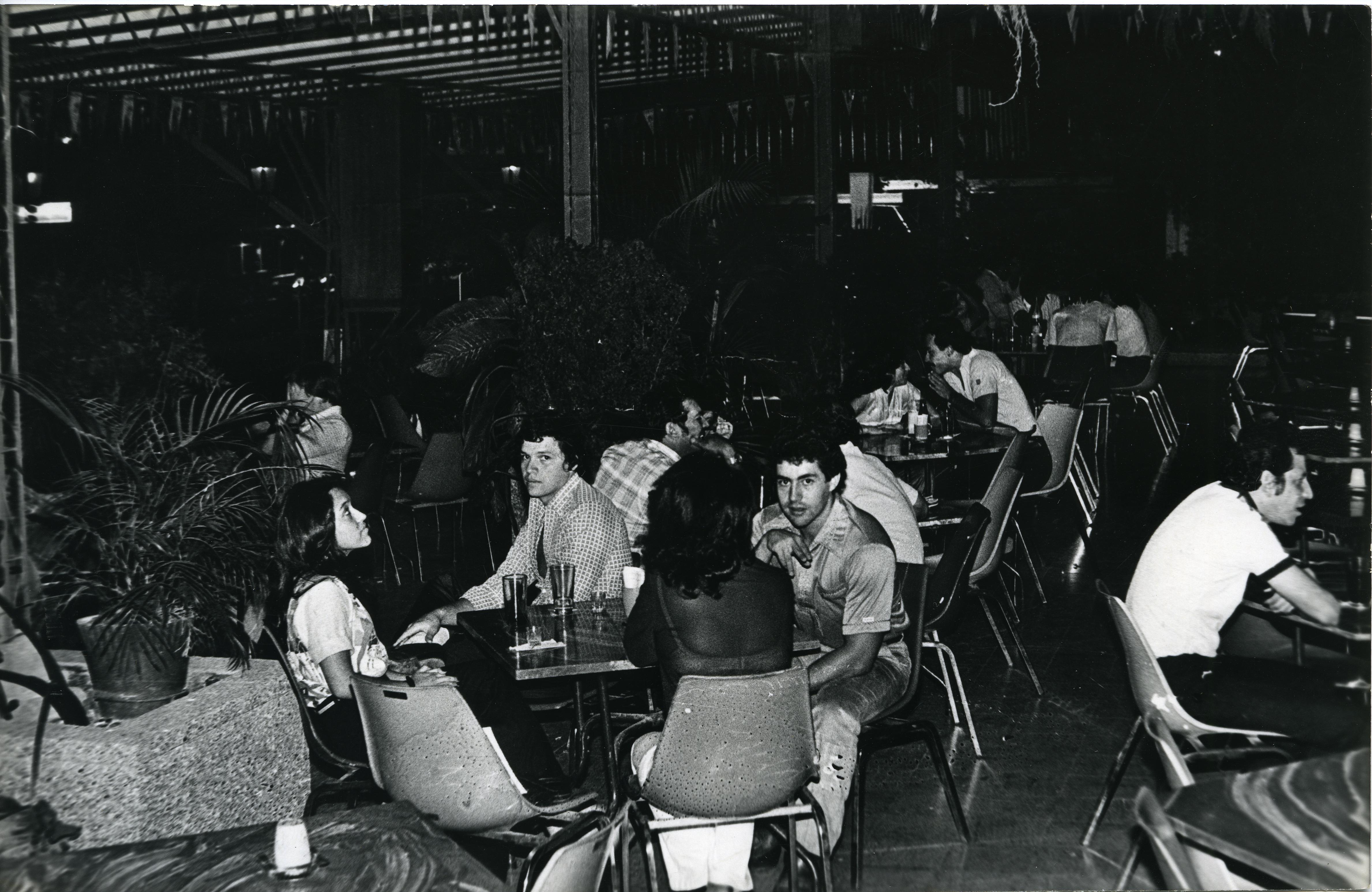 En la gráfica se observan los interiores de un restaurante. Se observan mesas, decoración y comensales.