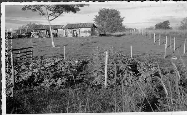 Panorámica de una de las casas de los inmigrantes japoneses en Corinto - Cauca. Santiago de Cali, C. 1940