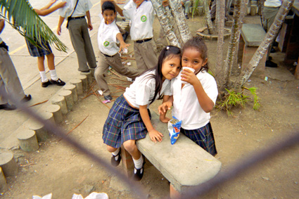 | dc.description | Plano Medio. Picado. Imagen tomada en exterior con luz de sol. En un primerísimo primer plano se observa parte de una reja metálica y a través de ella dos niñas, una sentada con su cabeza recostada sobre el hombro de otra niña que está de pie comiendo. | spa |