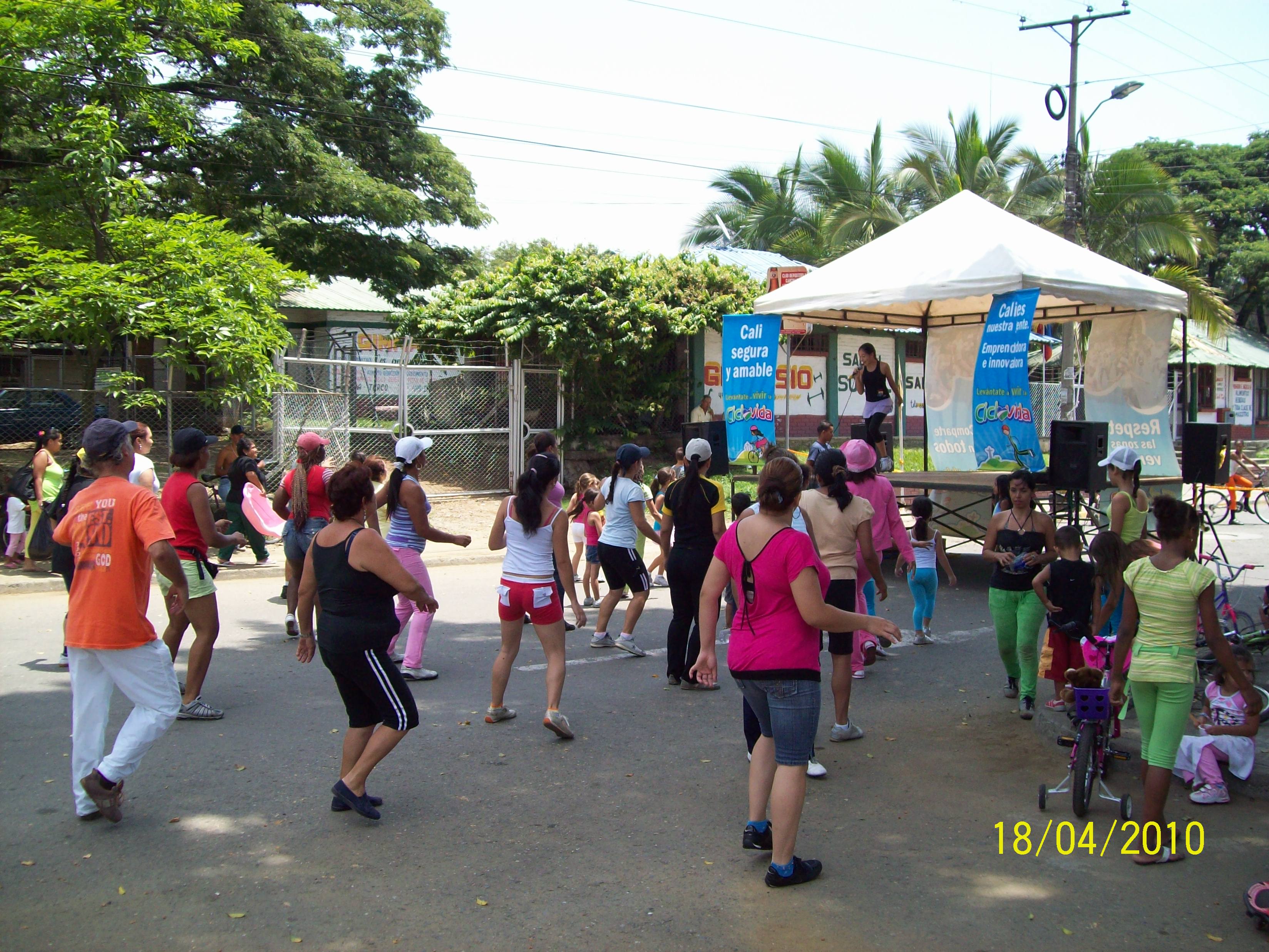 La CicloVida de Cali, es un programa de la Alcaldía de Santiago de Cali, liderado por la Secretaría del Deporte y Recreación, actividad incluyente para toda la ciudadanía, donde se cierran temporalmente las calles para los vehículos y se abren para los habitantes de la ciudad, todos los domingos de 8:00 am a 1:00 pm para que disfruten de un espacio seguro y gratuito para que en familia o amigos disfruten de la actividad física, recreación, deporte y cultura. Se aprecia en la imagen, clases de aeróbicos en el barrio Guaduales. Observamos instructora en tarima y asistentes realizando ejercicios