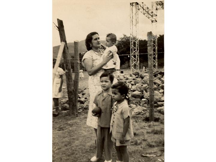 La señora Marina Montoya con sus hijos,Fabio,Eduardo y Stella Caicedo Montoya durante un paseo familiar.Santiago de Cali,1955