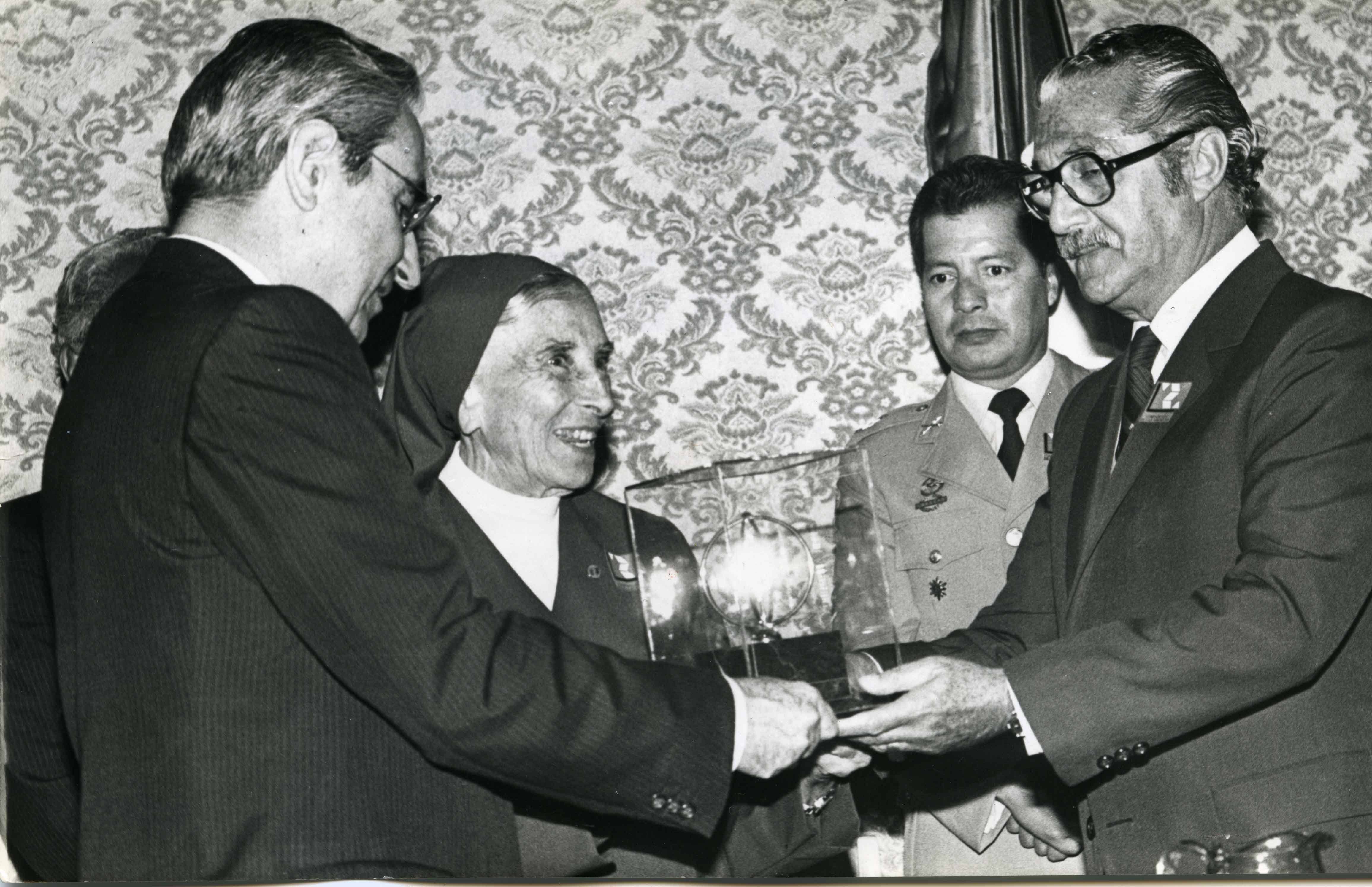 Compañeros de Las Amèricas ofreciò una comida en el Club Colombia a beneficio del Instituto para Niños Ciegos y Sordos del Club Nuevos Horizontes y el Centro de Capacitación Antonio Nariño. En la fotografí se distingue a la religiosa junto al doctor Joaquìn Ignacio Grijalba Mejìa, Robert Millard, representante de Carolina del Sur >El Archivo del Patrimonio Fotográfico y Fílmico del Valle del Cauca es responsabilidad de la Biblioteca Departamental del Valle Jorge Garcés Borrero, por convenio de cooperación suscrito con la Secretaria del Cultura Departamental, con el fin de aunar esfuerzos para su conservación, preservación y divulgación del Archivo entre la comunidad Vallecaucana, especialmente entre los estudiantes e investigadores que visitan la Biblioteca, propiciando el su uso y consulta permanente. La universidad Icesi es un colaborador en el proceso de difusión, facilitando la tecnología que permite la consulta de las imágenes.