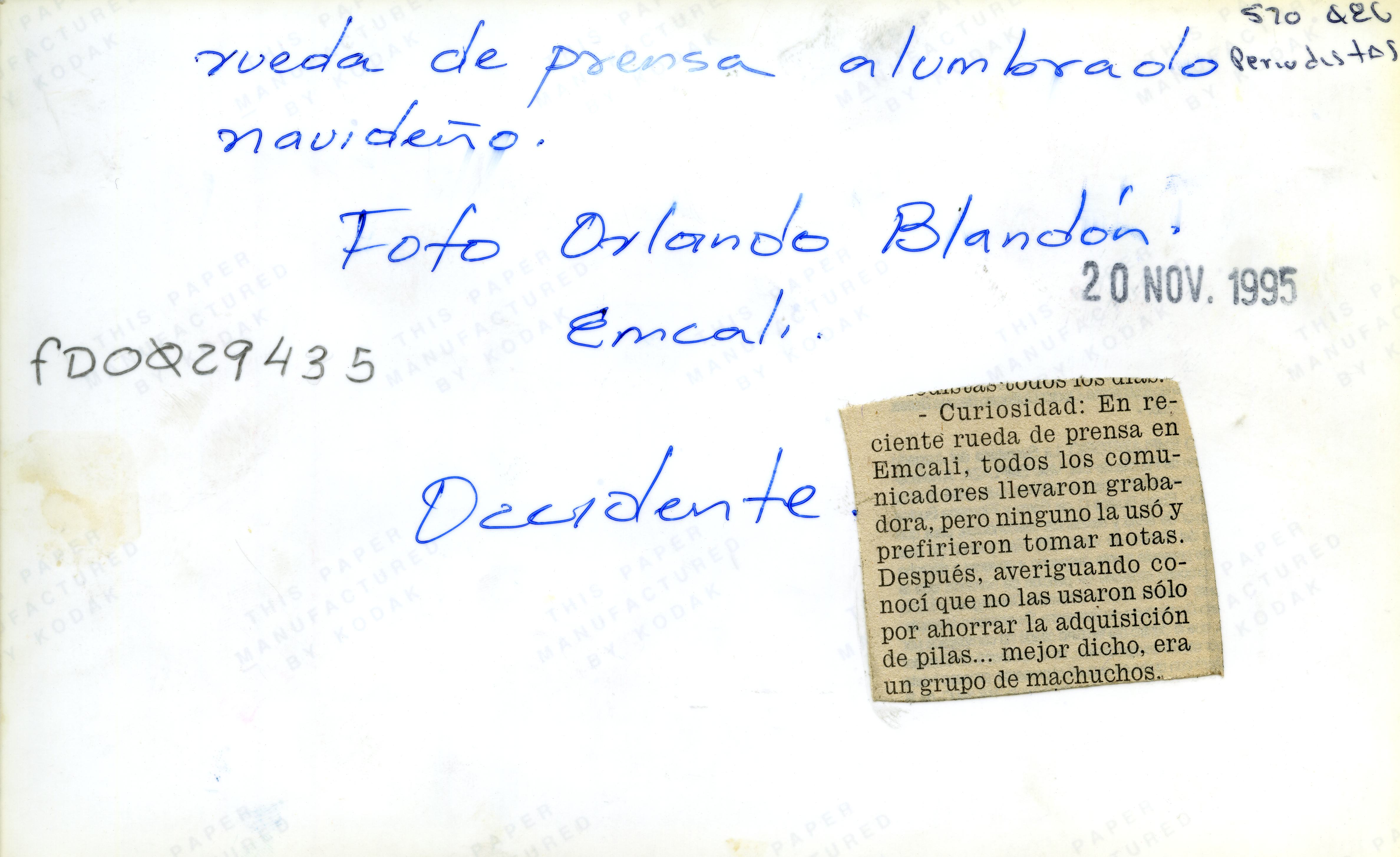 Curiosidad: En reciente rueda de prensa en emcali, todos los comunicadores llevaron grabadora, pero ninguno la usó y prefirieron tomar notas. Despues, averiguando conocí que no las usaron sólo por ahorrar la adquisición de pilas... mejor dicho, era un grupo de machuchos.