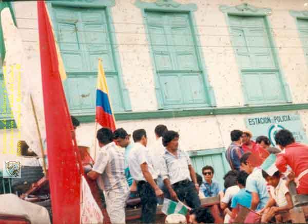 Reunión de líderes comunitarios en el parque principal de Alcalá. C. 1989.
