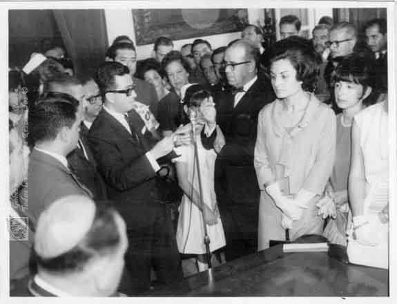 Olga Lucía de Franco, Olga Elvira, Arturo Franco, durante la ceremonia de poseción del Alcalde en 1964