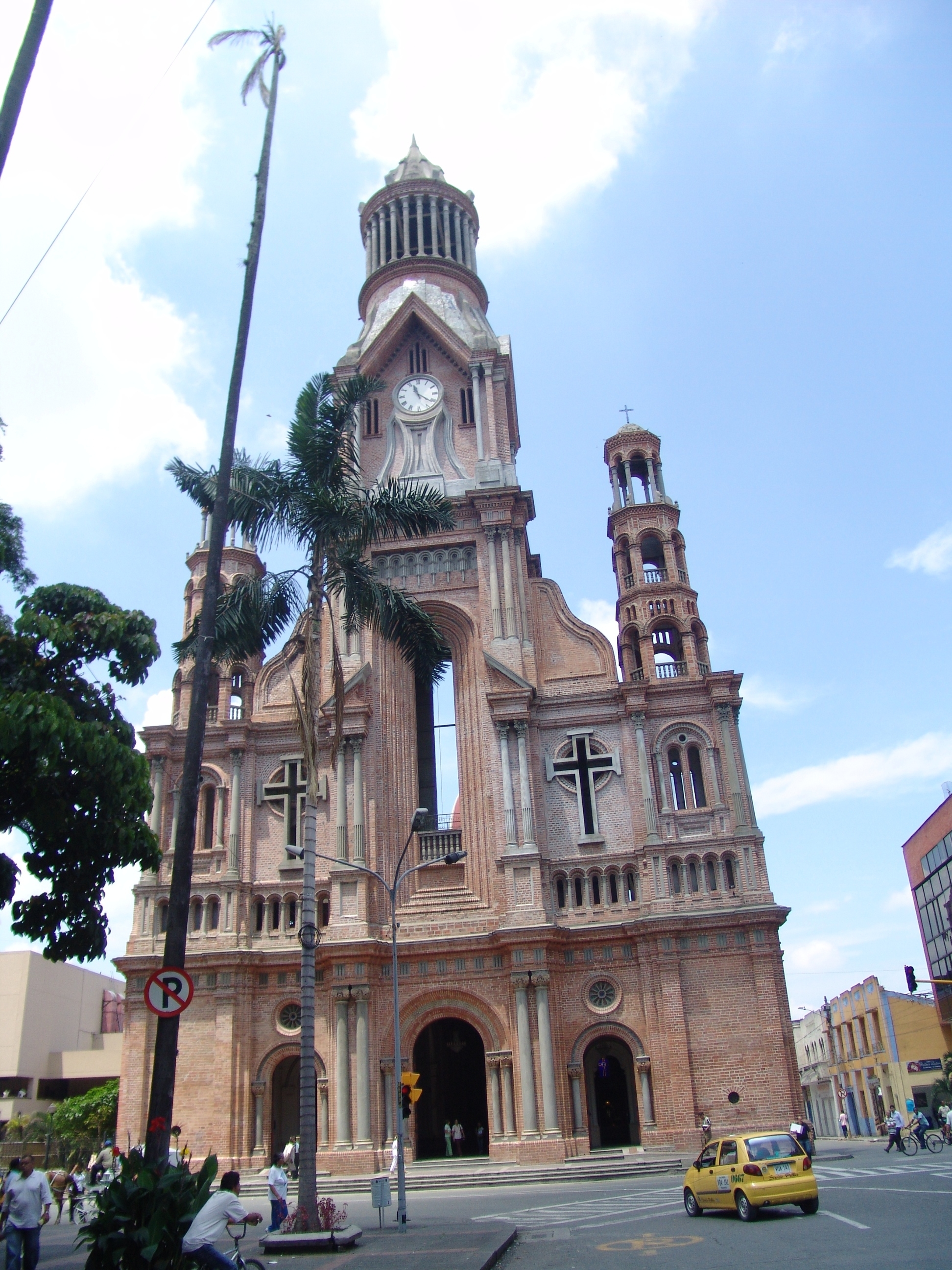 En la fotografía podemos observar un gran edificación, con un gran valor cultural y simbólico para la ciudad de Palmira, se trata de la Catedral "Nuestra Señora del Rosario del Palmar".