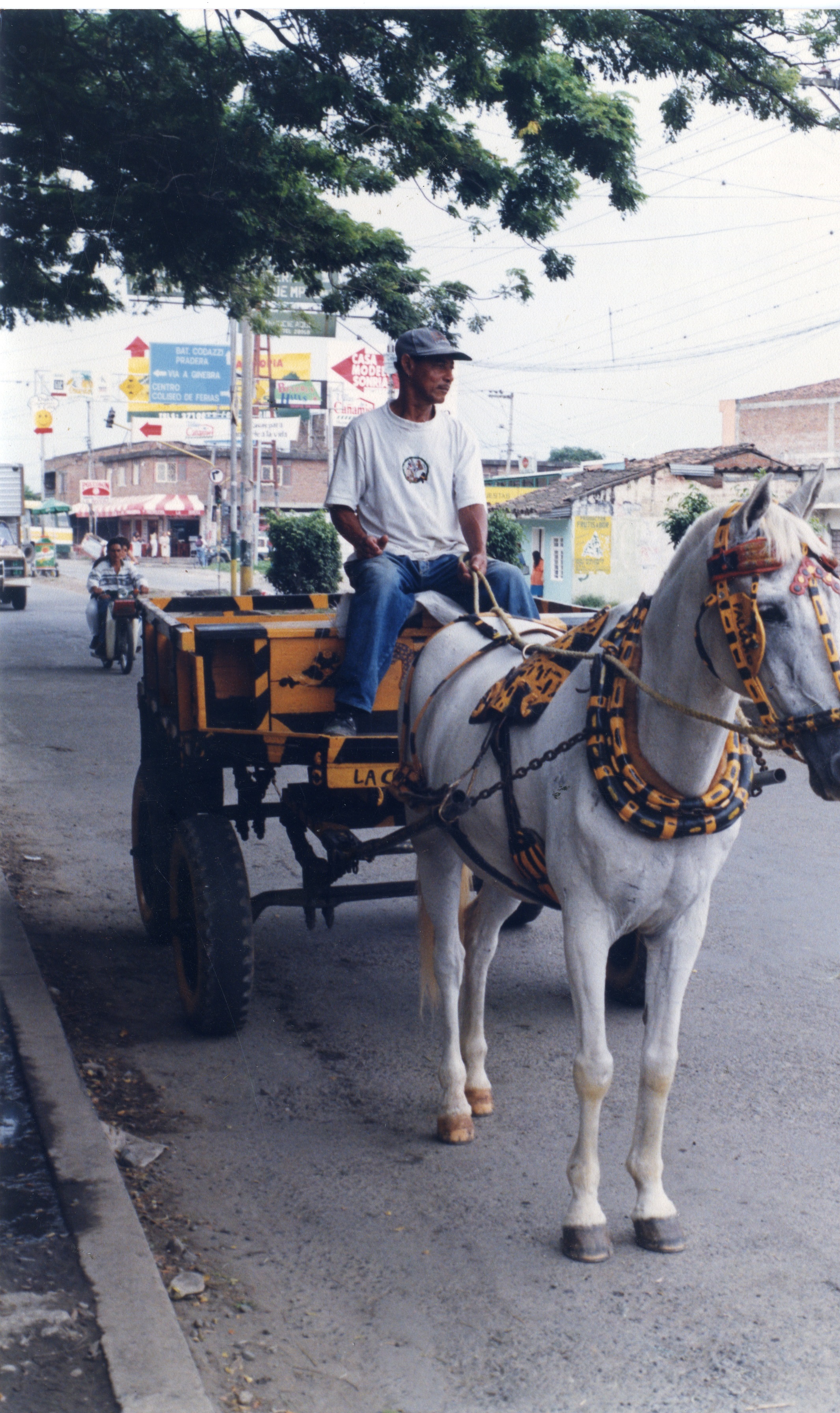 Se observa una carretilla pintada de negro y amarillo transitando por las calles.