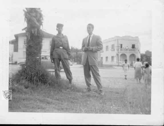 Los hermanos Evelio y Regulo Sánchez, departienco ideas sobre el futura de la ciudad. Santiago de Cali, C. 1.953