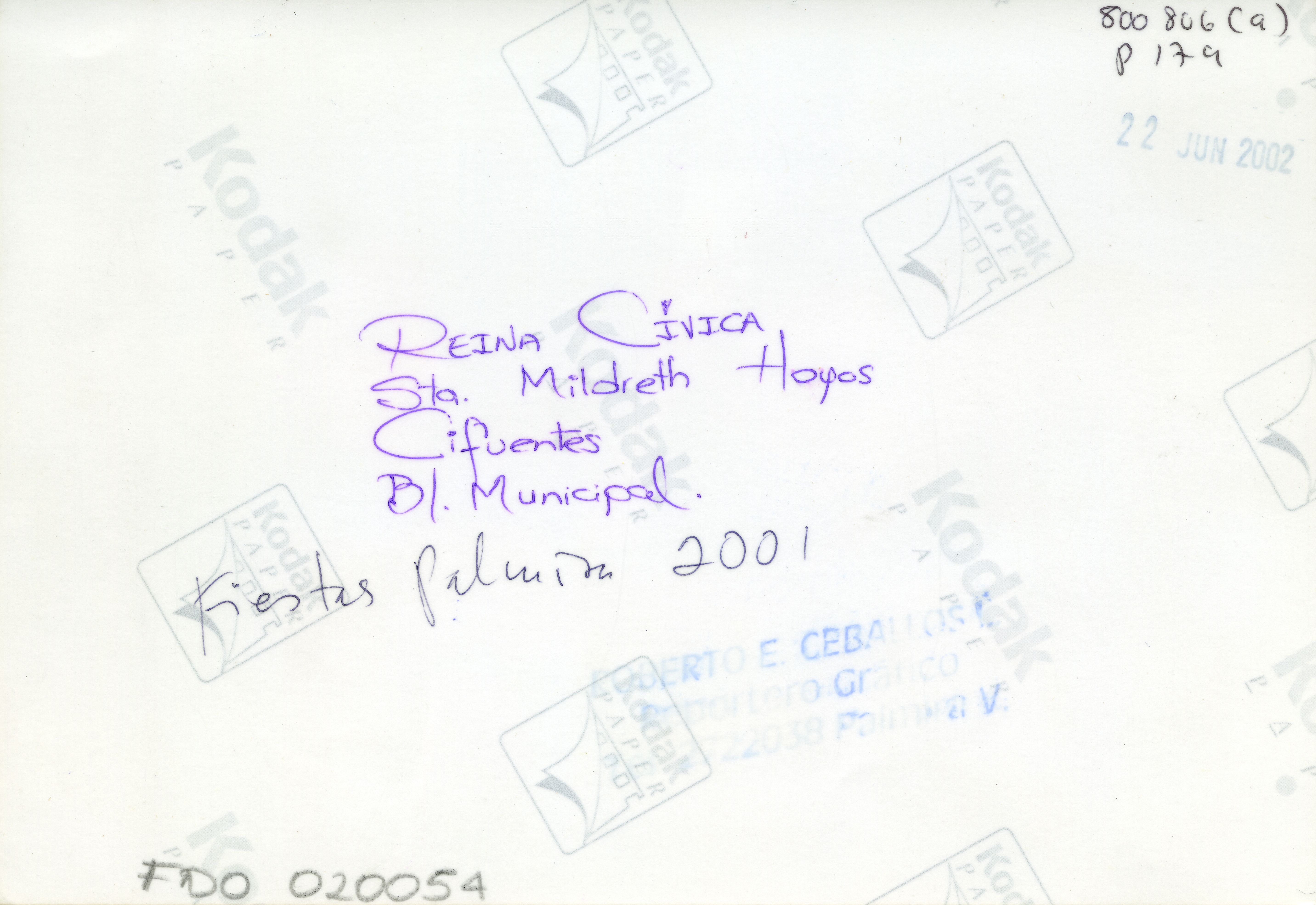 Plano medio de participantes de concurso de belleza. Se corona, a la derecha, a la Reina Cívica, señorita Mildreth Hoyos Cifuentes. Todo en el marco de la Feria de Palmira, en el barrio Municipal.