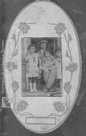 César O. Velásquez, Esther Julia, Laura María y Ofelia, en una foto familiar. Obra de arte realizada por un artista de la región. La Cumbre, 1924.