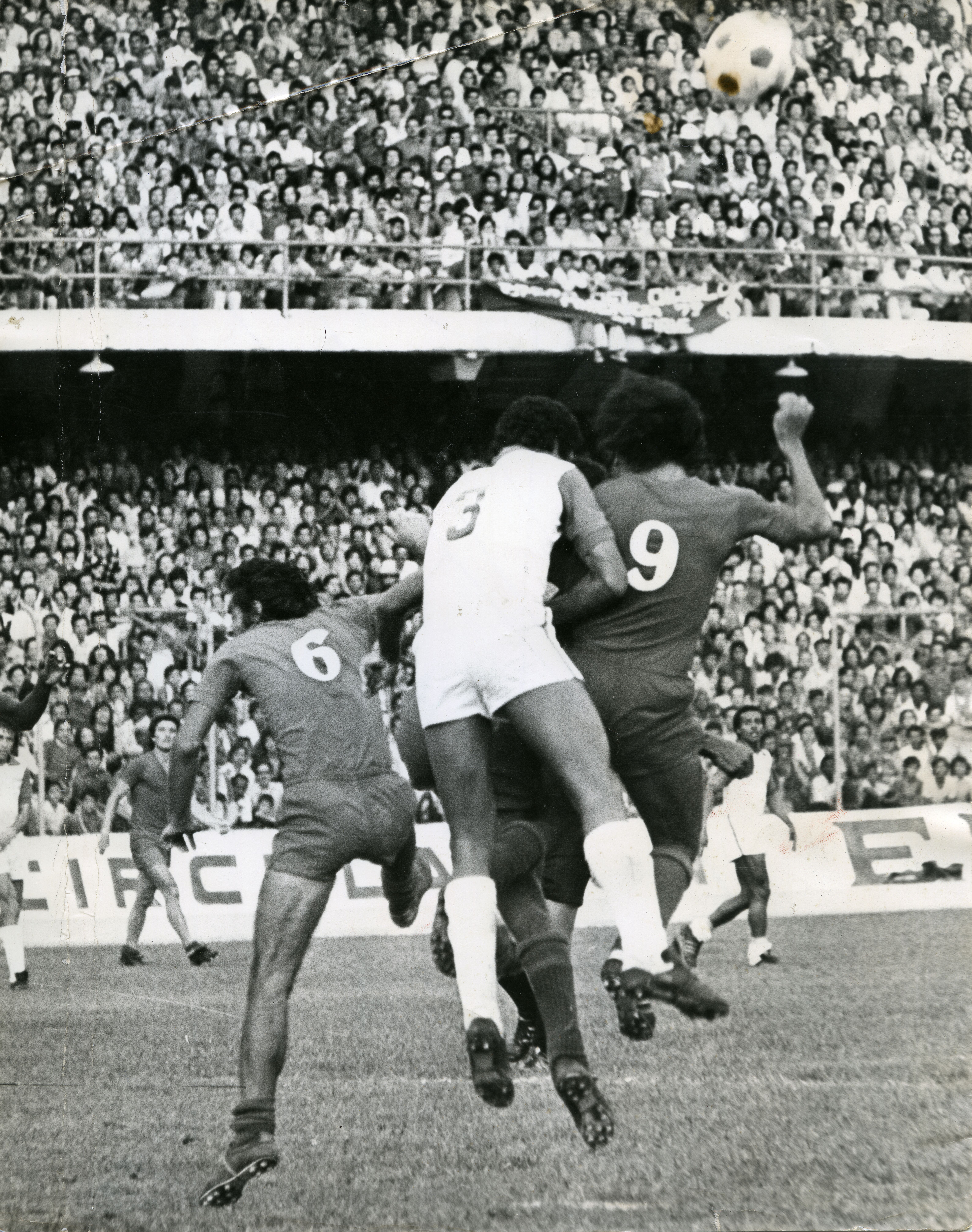 Escena del partido América vs Santa Fe. Observamos jugadores en acción disputan balón