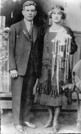 Celebración del matrimonio de la pareja conformada por Luis gil y Raquel Ossa. Podemos observar el traje poco convencional que lleva la novia. Sevilla. 1926.