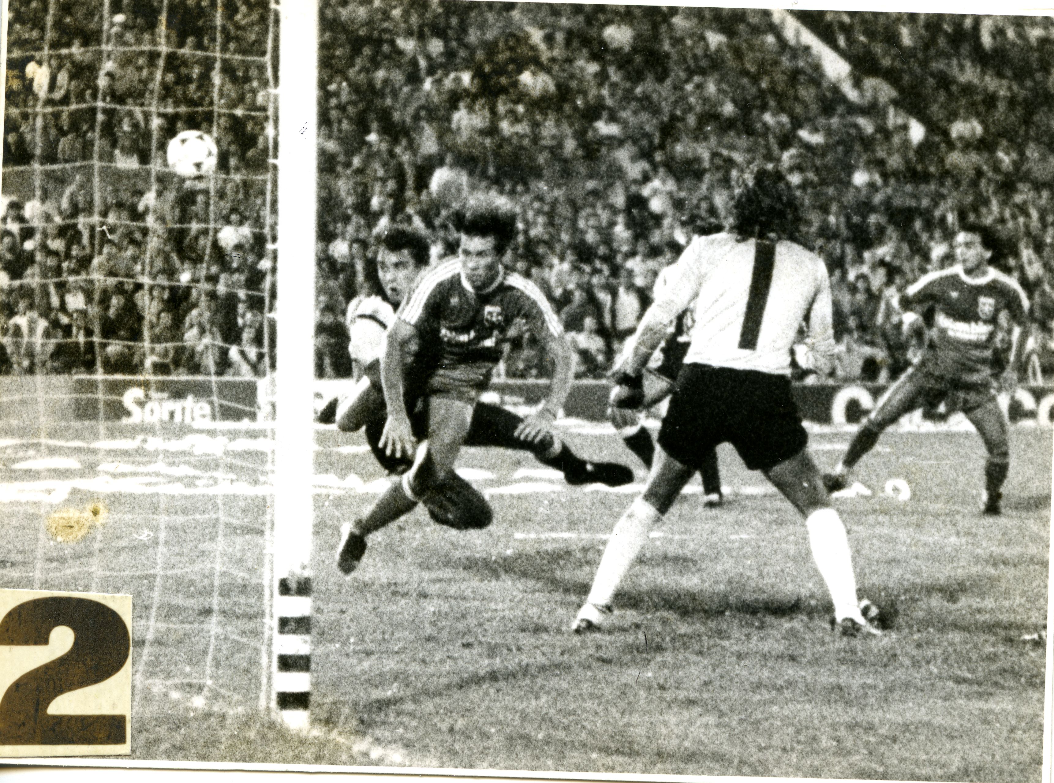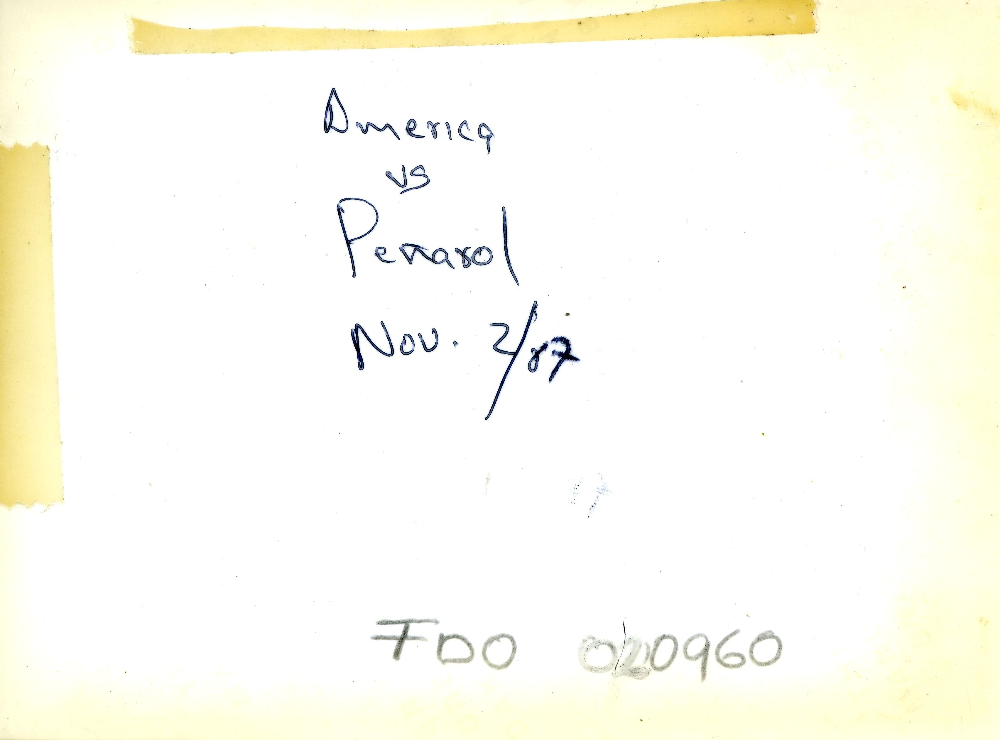 Partido realizado en el estadio Centenario de Montevideo, América de Cali 1 Peñarol de Montevideo 2. Se aprecia a Julio César Falcioni, Juan Manuel Battaglia. Observamos jugador América y Peñarol disputan balón