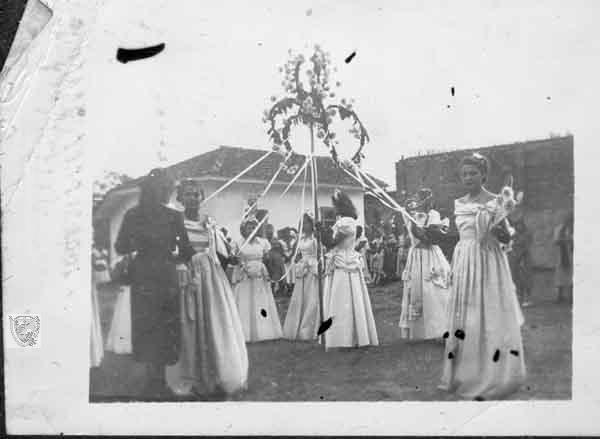 Grupo folclórico en torno a la celebración de las fiestas de San Roque. C. 1960