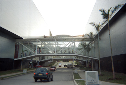 Centro comercial Palmetto Plaza. Sobresalen puentes peatonales del centro comercial. Plano general.