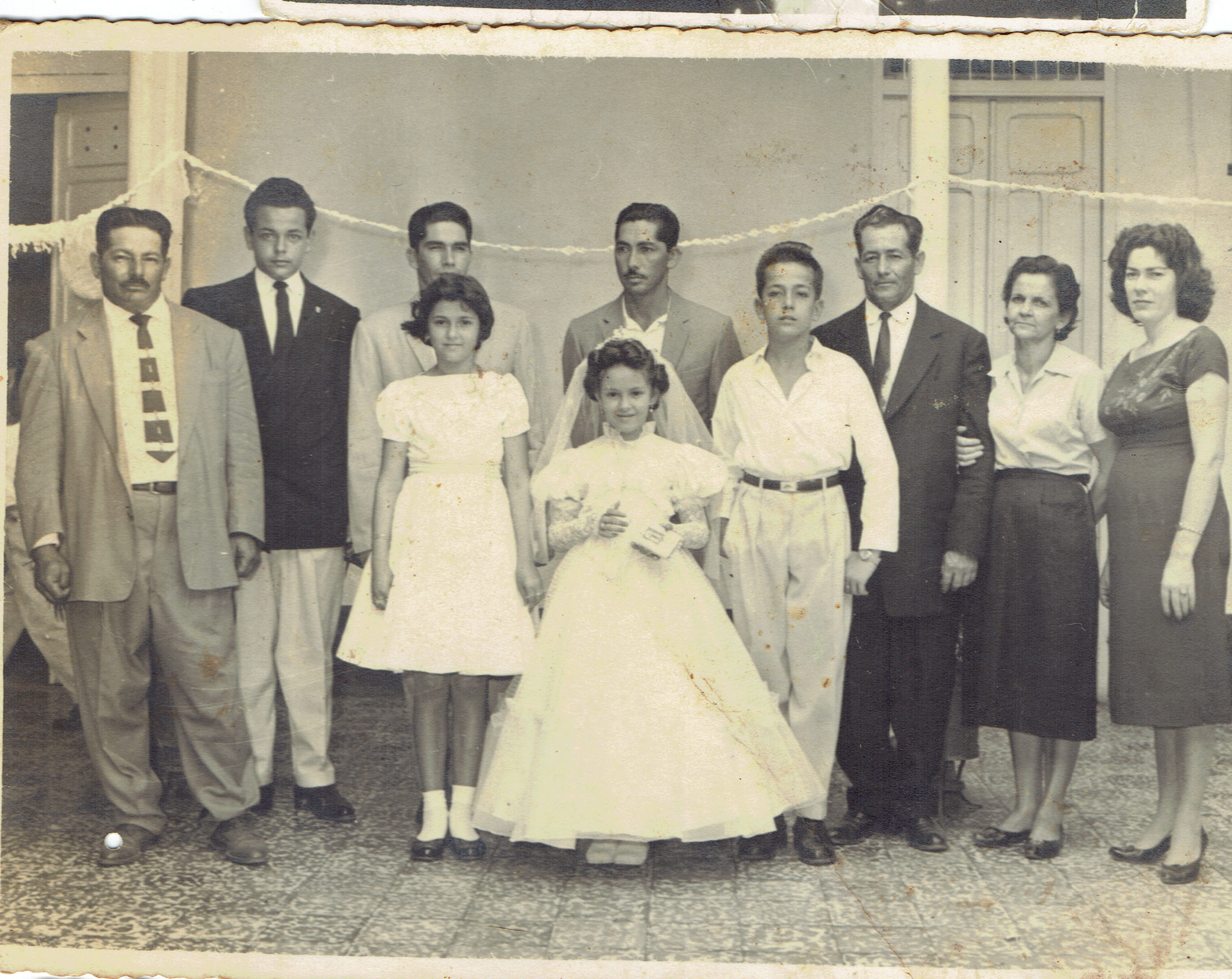 Corregimiento Los Chancos. Apreciamos primera comunión. Observamos a Mario Jaramillo, Bernardo, Arcesio Jaramillo, Julio Jaramillo, Clara Ines, Jaime Jaramillo, Paulina Jaramillo