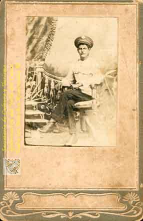 Luciendo su uniforme el señor Alfonso García Solarte en la estación de Policía de Palmira. C. 1921.