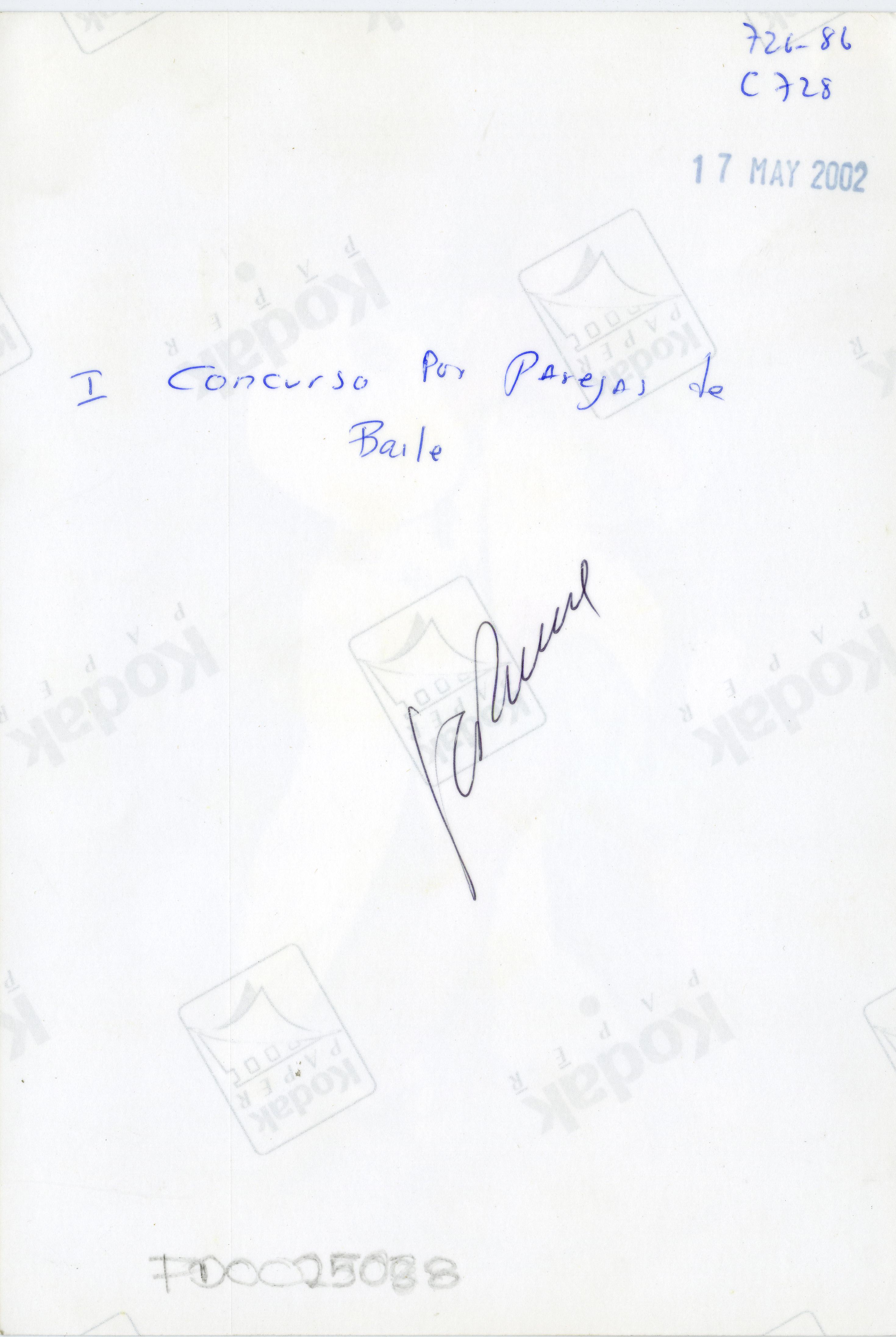 En la gráfica se aprecia primer concurso de baile por parejas. Observamos pareja bailando y están sonriendo. Hay público