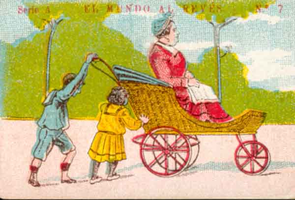 Serie "El mundo al revés", cromo obsequio de la Unión Tabacalera. 1930