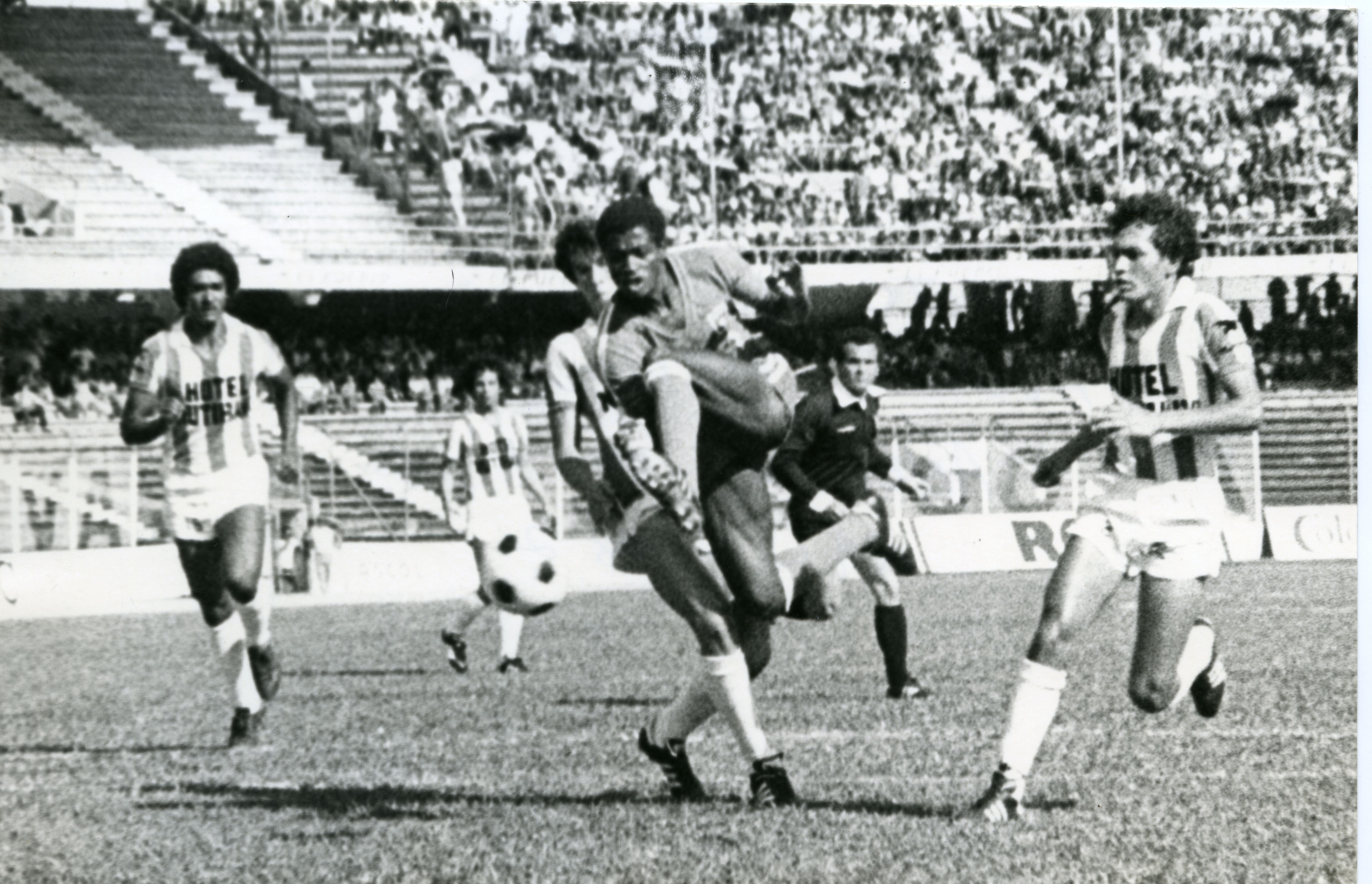 Escena del partido América vs Nacional en el estadio Olímpico Pascual Guerrero. Escena del partido jugador América disputa el balón con jugadores de Nacional