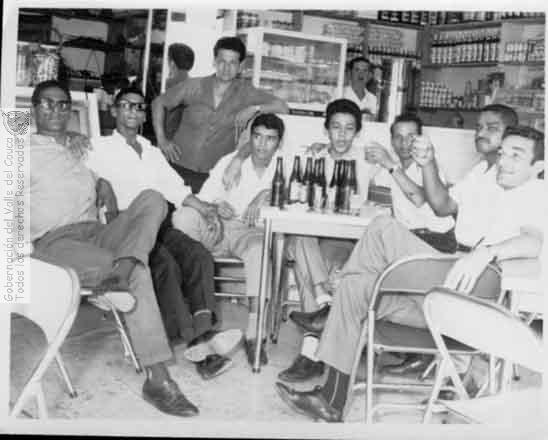 s. n. & s. n. (1970). Reunión de amigos en la tienda de "mil máscaras" & 600933. BUGALAGRANDE: Biblioteca Departamental Jorge Garces Borrero.