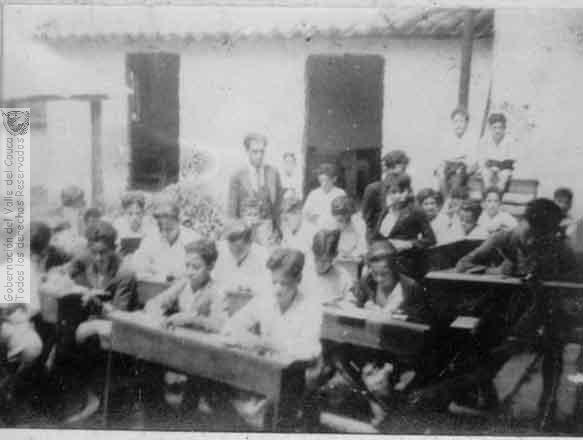 Se destacan los pupitres de dos puestos que hicieron parte del moviliario de los centros educativos hasta bien entrada la década de los 80. La Victoria. 1930
