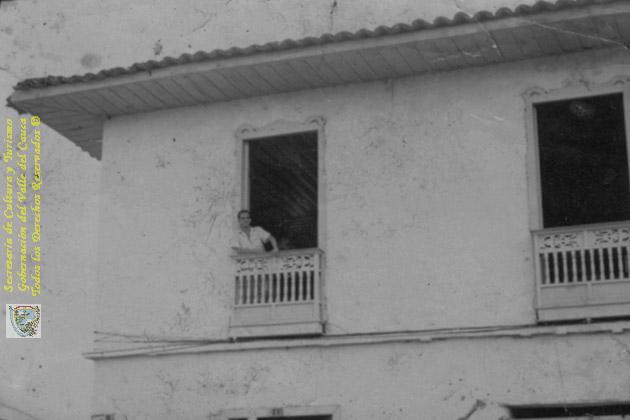 Segundo piso de la antigua Alcaldía. Nótese la influencia de la arquitectura de la colonización paisa en la decoración y diseño de la ventana - balcón. Obando. 1958