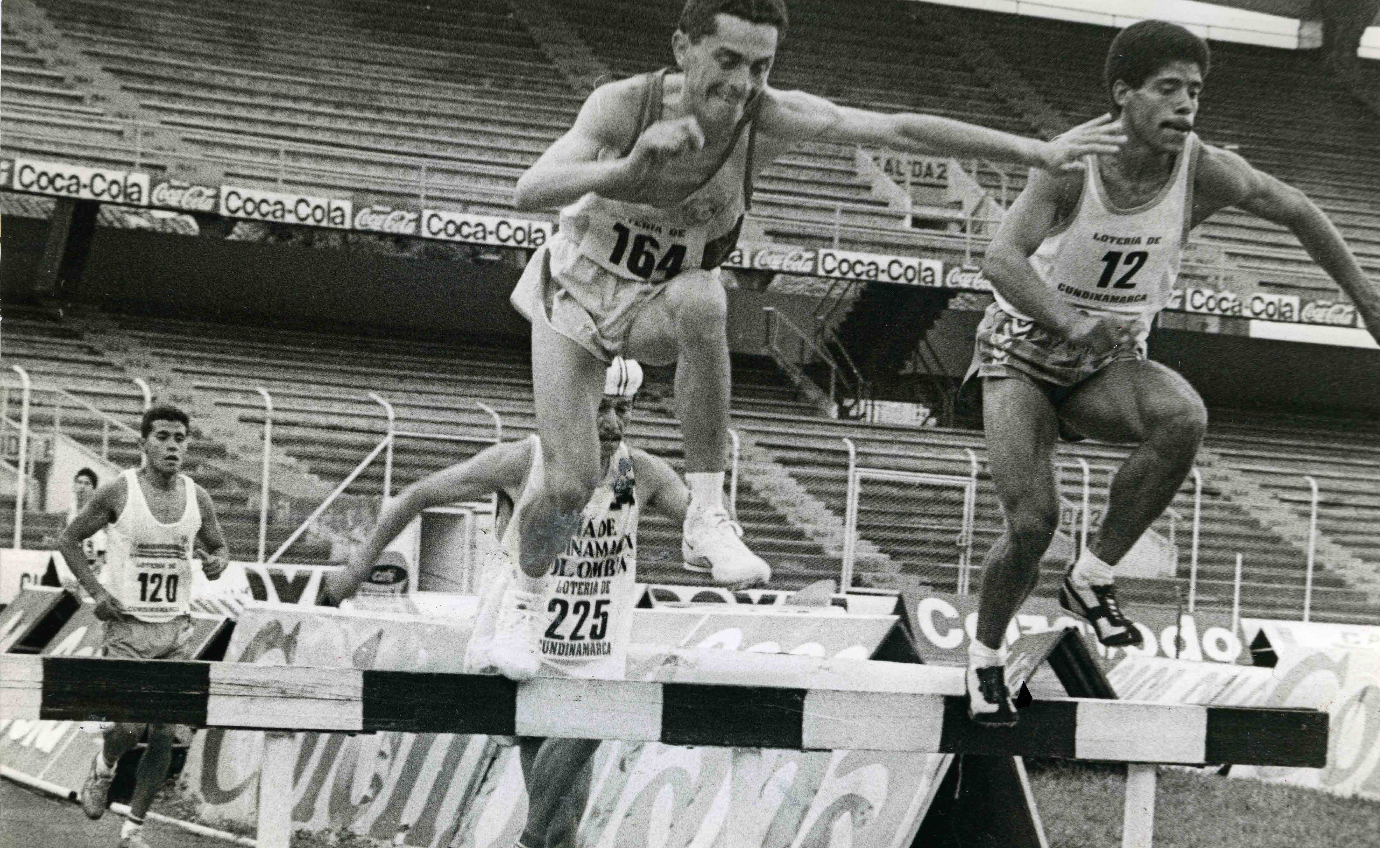 III Parada del Grand Prix Colombiano en el Estadio Pascual Guerrero en Santiago de Cali; Leonardo García fue el ganador de la prueba 3 mil metros con obstáculo,; segundo fue Juan Diego Paniagua, y tercero Wilson Munévar >El Archivo del Patrimonio Fotográfico y Fílmico del Valle del Cauca es responsabilidad de la Biblioteca Departamental del Valle Jorge Garcés Borrero, por convenio de cooperación suscrito con la Secretaria del Cultura Departamental, con el fin de aunar esfuerzos para su conservación, preservación y divulgación del Archivo entre la comunidad Vallecaucana, especialmente entre los estudiantes e investigadores que visitan la Biblioteca, propiciando el su uso y consulta permanente. La universidad Icesi es un colaborador en el proceso de difusión, facilitando la tecnología que permite la consulta de las imágenes.