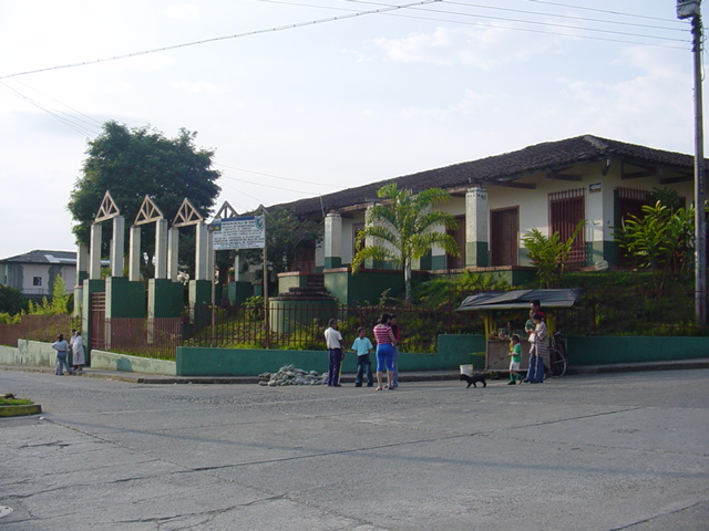 Sevilla, Valle del Cauca. Fundado en 1903, por Eraclio Uribe y Colonos antioqueños y caldenses. Nombres: San Luis. Municipio desde 1914. Economía importante en agricultura, caficultura, ganadería, comercio, minería, entre otros. Atractivo turístico: Basílica San Luis Gonzaga, Café Casablanca, fincas cafeteras. Observamos en la imagen, fundación casa de la cultura. Se aprecia personas en el exterior