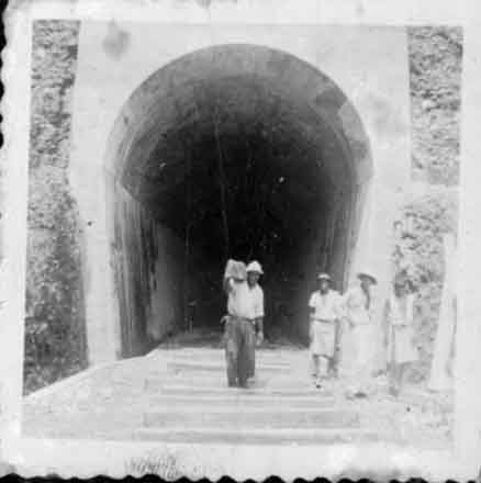 Obreros en la terminación de las obras de revestimiento de los túneles para el ferrocarril del Pacífico. Buenaventura, 1955.
