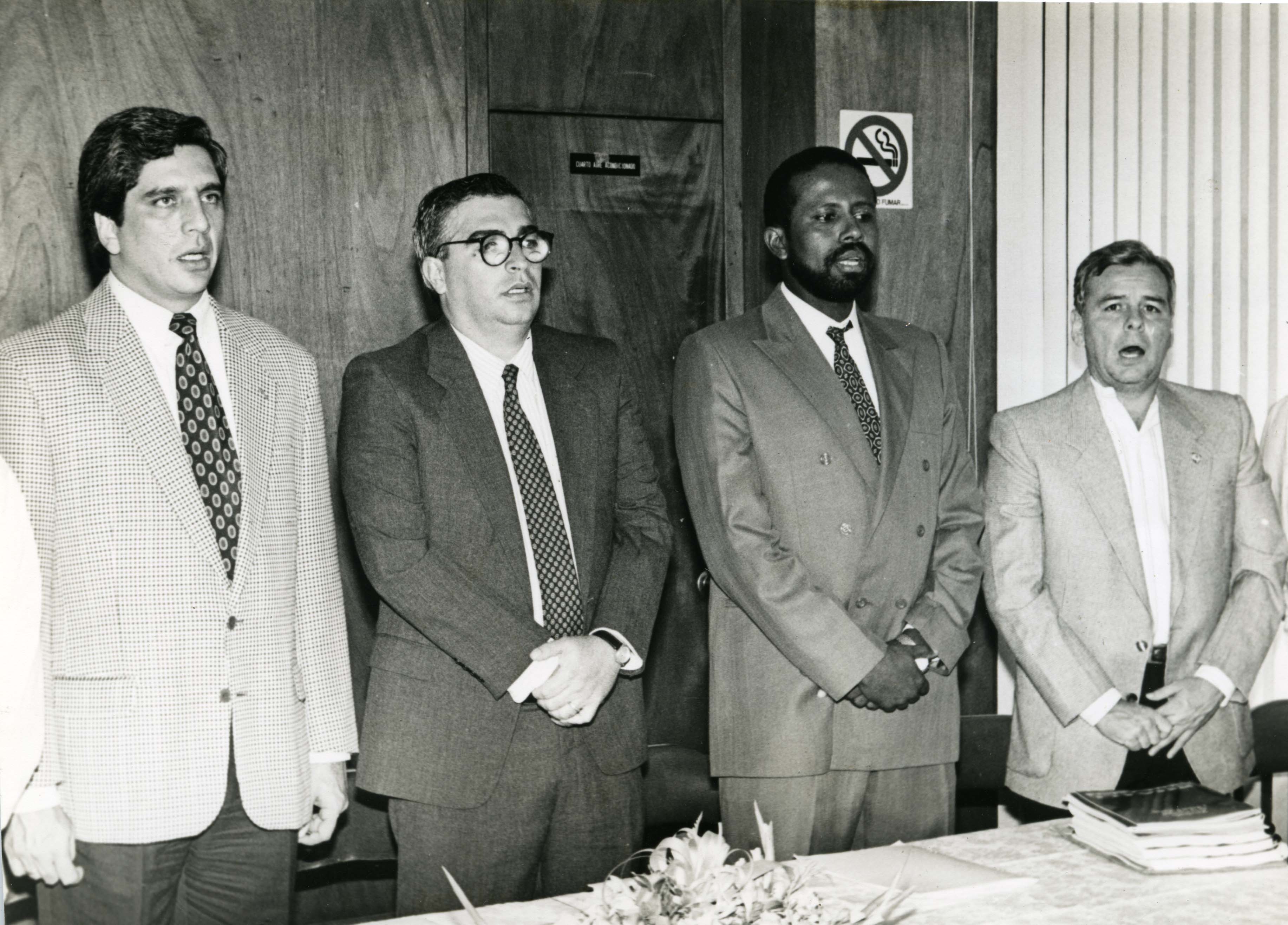 Reunión de Políticos en la Alcaldía Municipal; Mauricio Guzmán, Alcalde; Francisco Murgueitio Restrepo, Alto Comisionado para la Paz; Jaime Perea Ramos, Consejero de Paz; Gustavo Rivera Marmolejo, Concejal >El Archivo del Patrimonio Fotográfico y Fílmico del Valle del Cauca es responsabilidad de la Biblioteca Departamental del Valle Jorge Garcés Borrero, por convenio de cooperación suscrito con la Secretaria del Cultura Departamental, con el fin de aunar esfuerzos para su conservación, preservación y divulgación del Archivo entre la comunidad Vallecaucana, especialmente entre los estudiantes e investigadores que visitan la Biblioteca, propiciando el su uso y consulta permanente. La universidad Icesi es un colaborador en el proceso de difusión, facilitando la tecnología que permite la consulta de las imágenes.