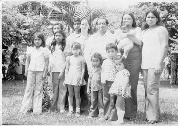 Humberto Jiménez, María del Carmen Jiménez, Elizabeth Jiménez, Laura García, Ana Cilia Payán. Nótese que todas las mujeres usan slaks, una prenda que se impuso desde los años 70's. Vijes, 1972