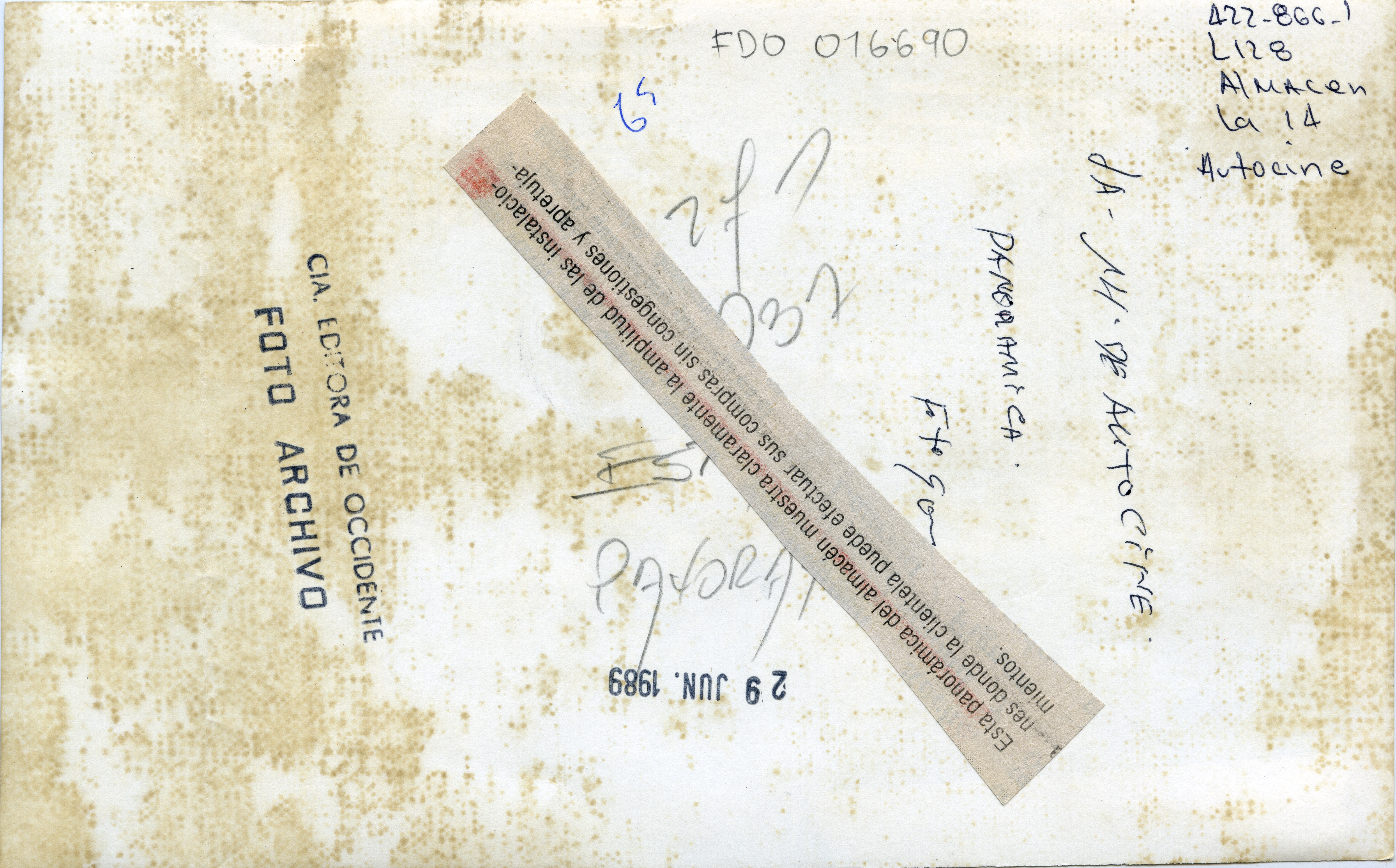 Al reverso de la fotografía se anexa recorte: "Esta panorámica del almacén muestra claramente la amplitud de las instalaciones donde la clientela puede efectuar sus compras sin congestiones y apretujamientos"