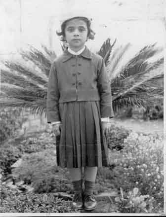 María Lucy Ramírez, luciendo el uniforme de gala del colegio San José de La Montaña. La Cumbre, 1960.