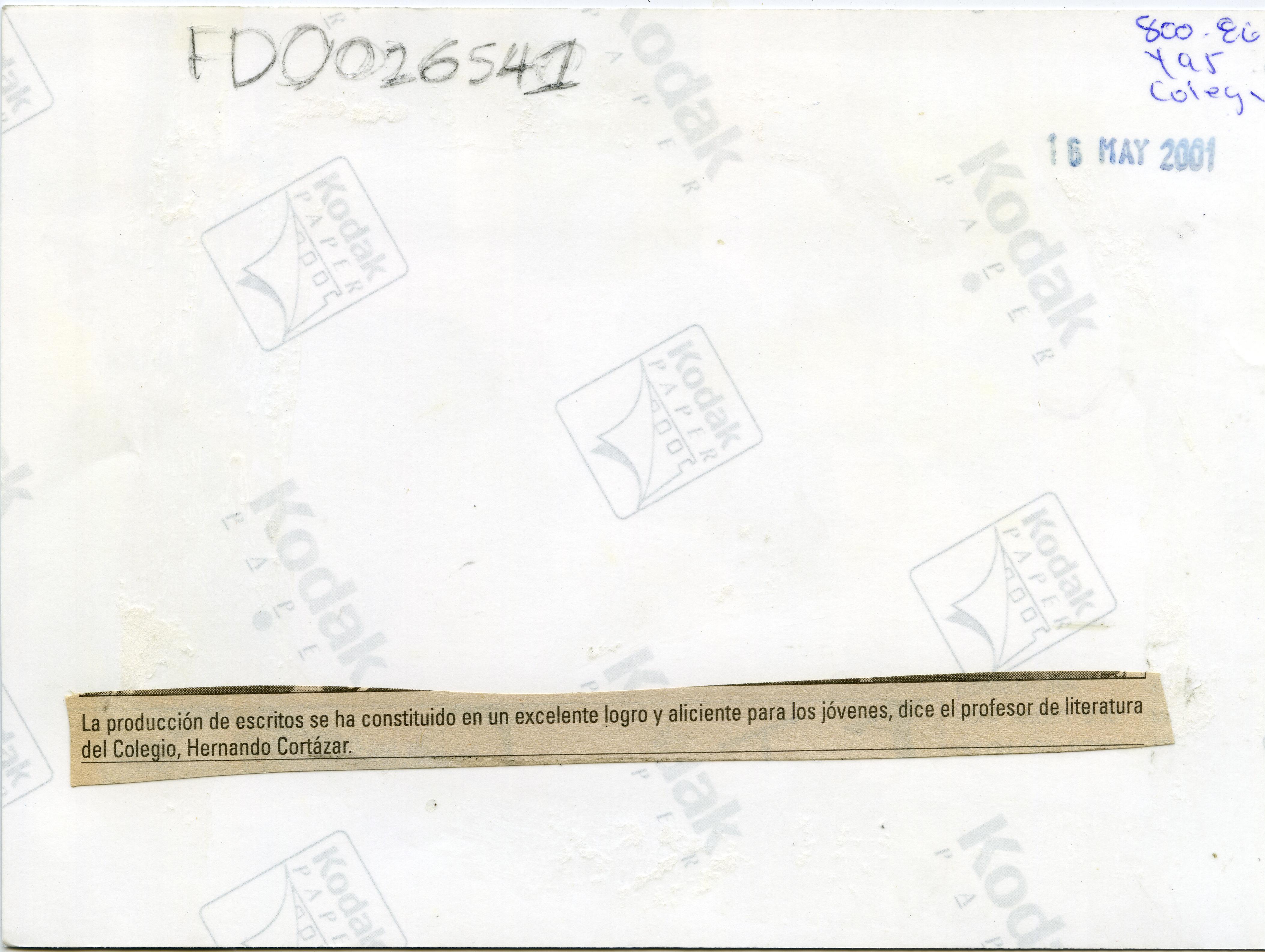 Reverso "La producción de escritos se ha constituido en un excelente logro y aliciente para los jóvenes, dice el profesor de literatura del Colegio, Hernando Cortázar."