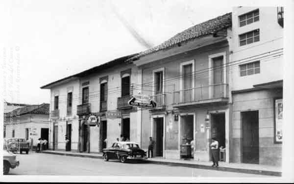Aspecto de las edificaciones del costado oriental del parque de Bolívar de Palmira, en 1958