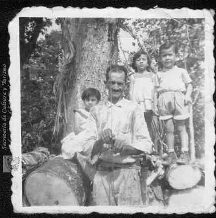 Alfonso Rojas, Marcia y María Eva Henao y Ofelia García. Roldanillo, vereda el Palmar, 1954.