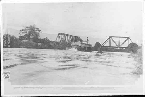 Puente giratorio sobre el río Cauca, utilizado para el paso de los barcos a vapor
