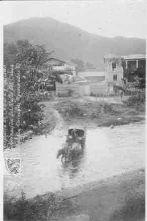 Victoria atravesando el río Cali, detrás la Ermita. Santiago de Cali, 1928