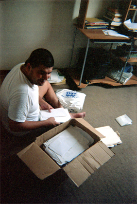Medina Cardona, L. F. (2005). Compañero de apartamento del autor organizando documentos en el interior de la residencia. Santiago de Cali: Biblioteca Departamental Jorge Garces Borrero.