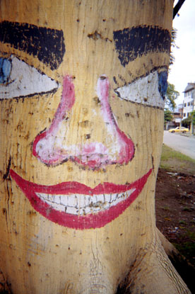 Cadavid Ordónez, L. F. (2005). Primer plano de tronco de árbol con intervención artística. Santiago de Cali: Biblioteca Departamental Jorge Garces Borrero.