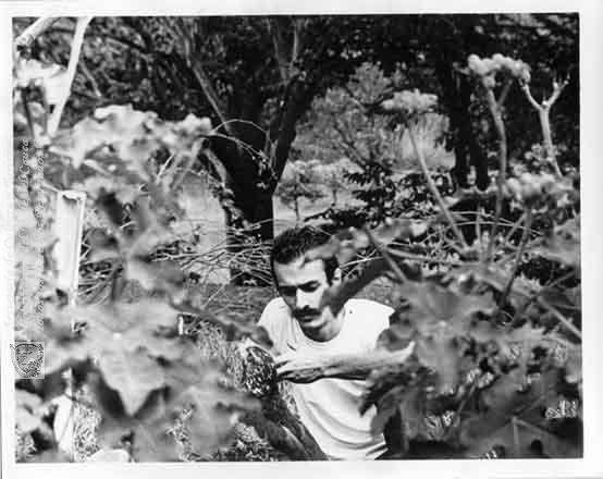 Gregorio González Caicedo, observando un aguila en cautiverio en el museo de Ciencias Naturales. Santiago de Cali, 1984