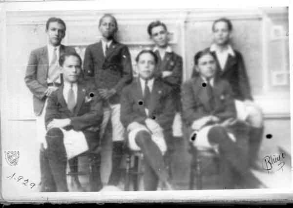 Fotografía escolar, Obsérvese los pantalones cortos que utilizan los personajes de la foto. "Largar pantalon" significaba dejar de ser menor de edad. C. 1929