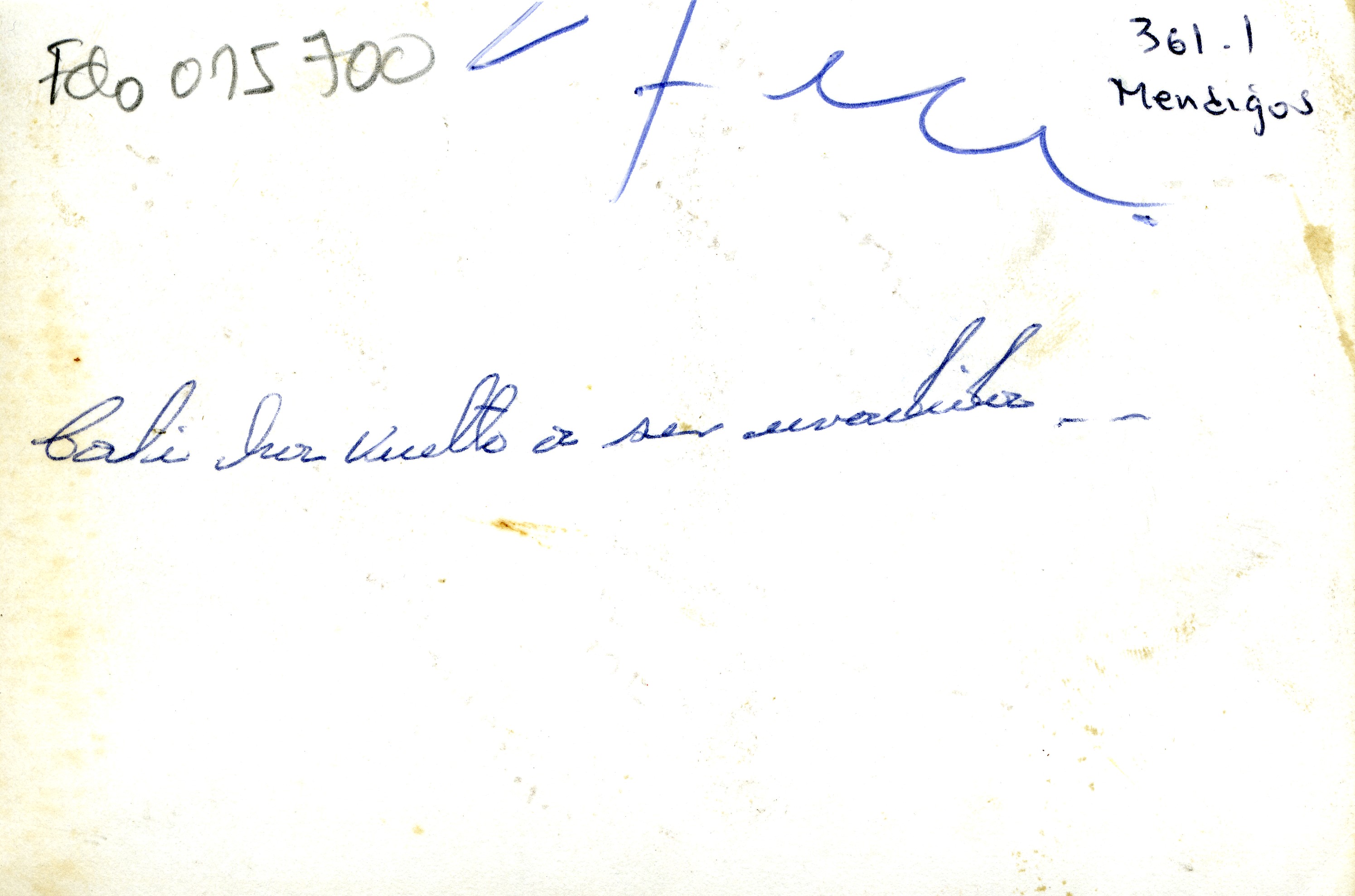 El habitante esta dormido sobre un anden en la vía pública. Al reverso dice: ¨Cali ha vuelto a ser invadida¨. También hay una categorización de ¨mendigos¨