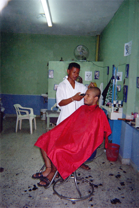 Plazas Lizcano, L. A. (2005). Se observan dos hombres en interior de una peluquería. Santiago de Cali: Biblioteca Departamental Jorge Garces Borrero.