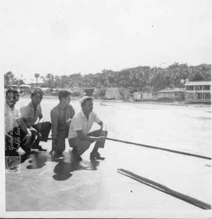 Los profesores Omar Medina, Alfonso Rojas, Armando Vélez y Norberto Becerra, en Juanchaco. Buenaventura. 1964.