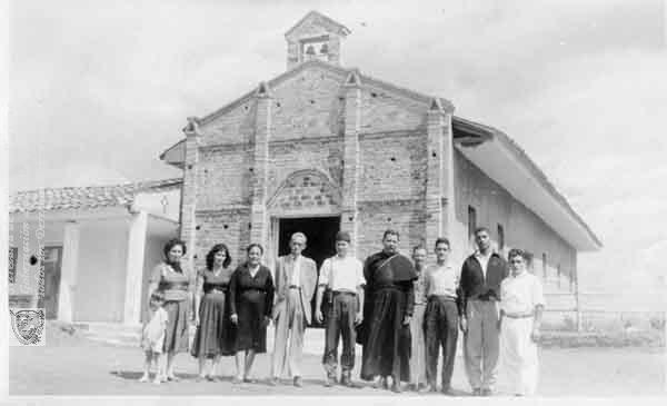 PEDRO A. RIASCOS (1900). Familia Gómez y el sacerdote, después de Misa & 401970. LA CUMBRE: Biblioteca Departamental Jorge Garces Borrero.